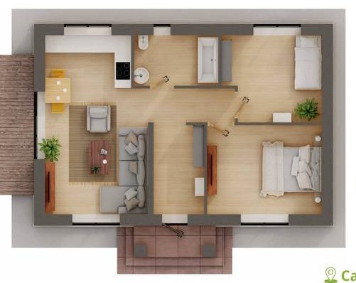 Септик, скважина, 2 спальни, 1 санузел, Высота потолка 2,95, Площадь family room 21,4 м2, Все включено (мебель, ремонт)