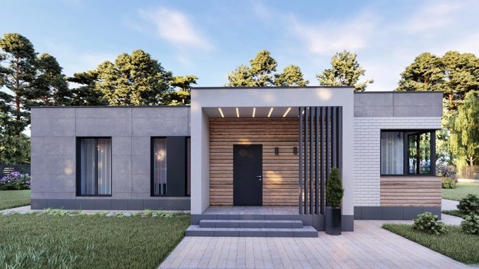 Дюна оригинальный коттедж в стиле хай-тек со сложным дизайном экстерьера.